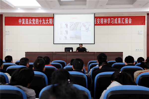 11月25日,中復連眾舉行黨的十九大精神專(zhuān)題輔導暨井岡山精神、延安精神學(xué)習成果匯報會(huì ),把學(xué)習十九大精神與弘揚革命精神結合起來(lái),教育和引導黨員干部堅定理想信念,牢記宗旨使命。公司黨委書(shū)記、總經(jīng)理喬光輝,黨委副書(shū)記、紀委書(shū)記王彤兵,財務(wù)總監張小平及在連黨員、積極分子、發(fā)展對象100余人參加會(huì )議。